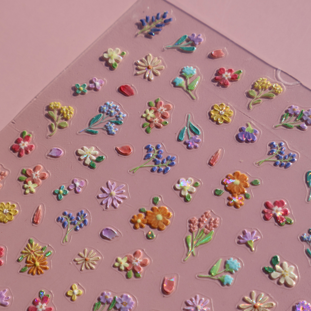 Nálepky sú ultra tenké, flexibilné a dokonale priľnú k povrchu nechtu bez vytŕčania. Rôzne tvary a farby umožňujú vytvárať romantické, jarné, letné aj hravé dizajny — od minimalistických akcentov až po bohaté kvetinové kompozície.