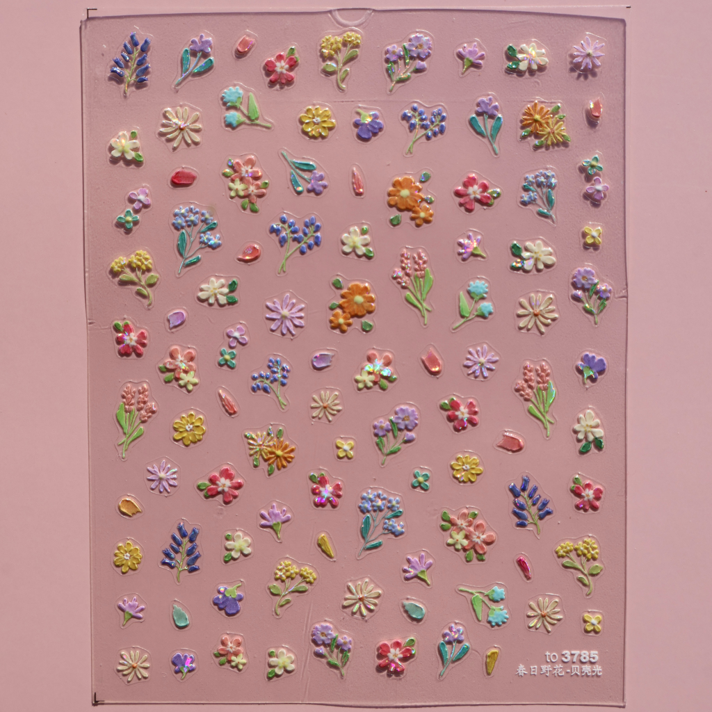 Embosované kvetinové nálepky s Glow efektom. Jemné, farebné a ideálne na romantické, jarné a elegantné nail art dizajny.